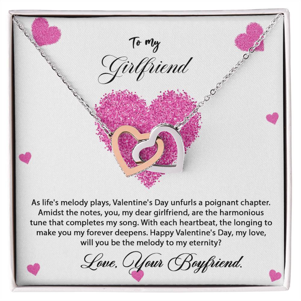 valentine-8c Interlocking Hearts Necklace, Gift to my Girlfriend with Beautiful Message Card