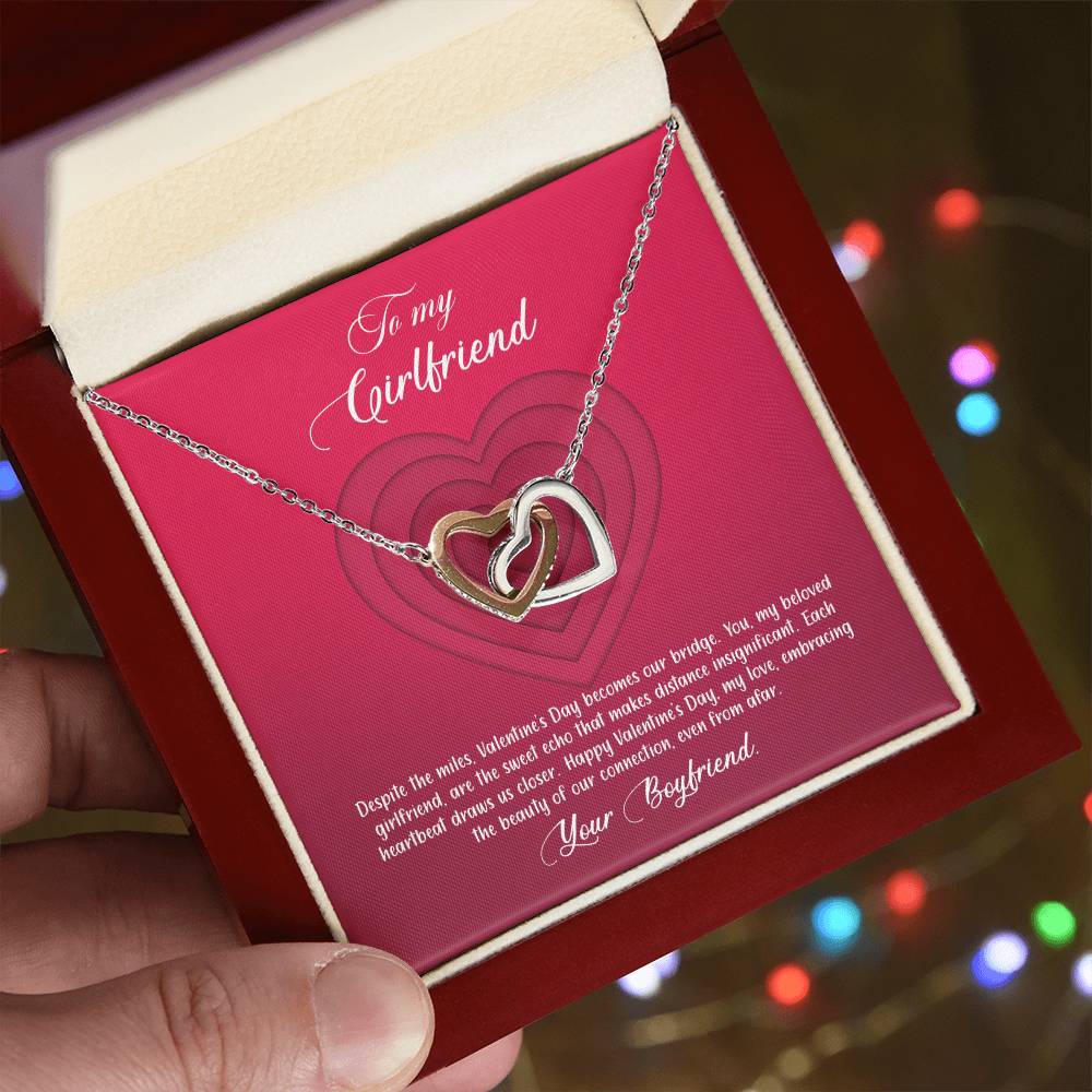 valentine-9c Interlocking Hearts Necklace, Gift to my Girlfriend with Beautiful Message Card